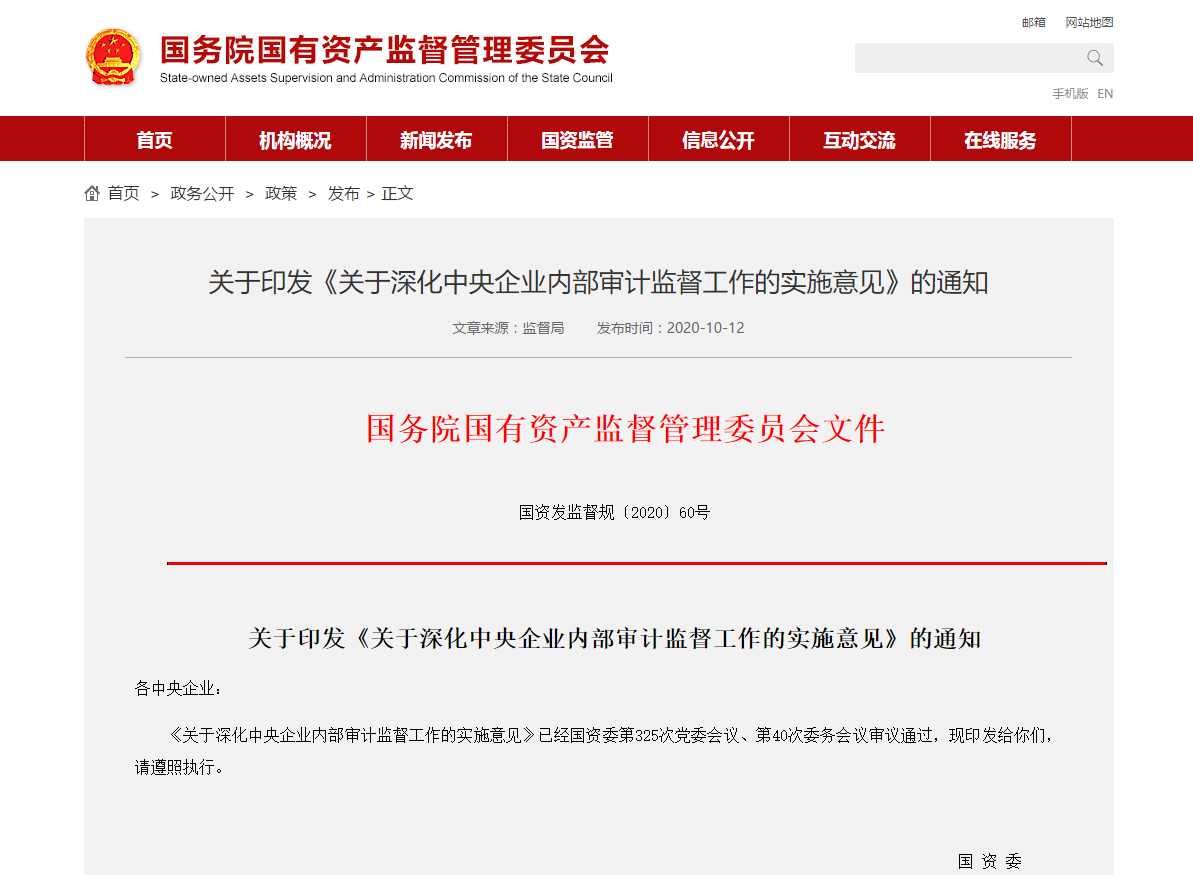 关于印发《关于深����� �������Ƴ������������ �������Ƴ������������ �������Ƴ������������ �������Ƴ�������化中央企业内部审计监督工作的实施����� �������Ƴ������������ �������Ƴ������������ �������Ƴ������������ �������Ƴ������意见》的通知