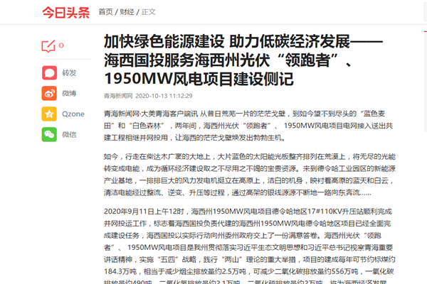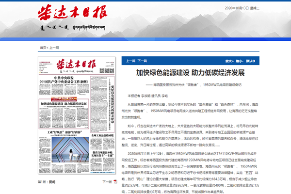 【柴达木日报】加快绿����� �������Ƴ������������ �������Ƴ������������ �������Ƴ������������ �������Ƴ�������色能源建设 助力低碳经济发展����� �������Ƴ������������ �������Ƴ������������ �������Ƴ������������ �������Ƴ������——海西国投服务海西州光伏“领跑者����� �������Ƴ������������ �������Ƴ������������ �������Ƴ������������ �������Ƴ�������”、1950MW风电项目建设侧记 ����� �������Ƴ������������ �������Ƴ������������ �������Ƴ������������ �������Ƴ�������2020-10-13