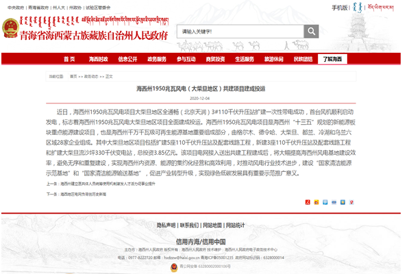 海西州1950兆瓦����� �������Ƴ������������ �������Ƴ������������ �������Ƴ������������ �������Ƴ�������风电(大柴旦地区)共建项目建成投运 ����� �������Ƴ������������ �������Ƴ������������ �������Ƴ������������ �������Ƴ������� 2021-01-04